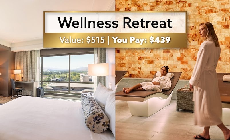 Recharge and relax in The Spa with $400 credit for four, access to our spa VIP room, plus ground transportation to and from the resort. Each person in your group will also get a spa gift bag and one glass of champagne. When you're done, head up to your room and enjoy a 2-Night Stay in our AAA Four-Diamond hotel.