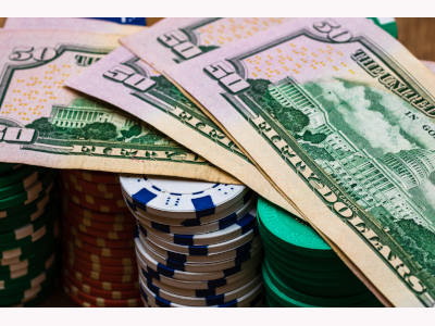 Close up of money and poker chips